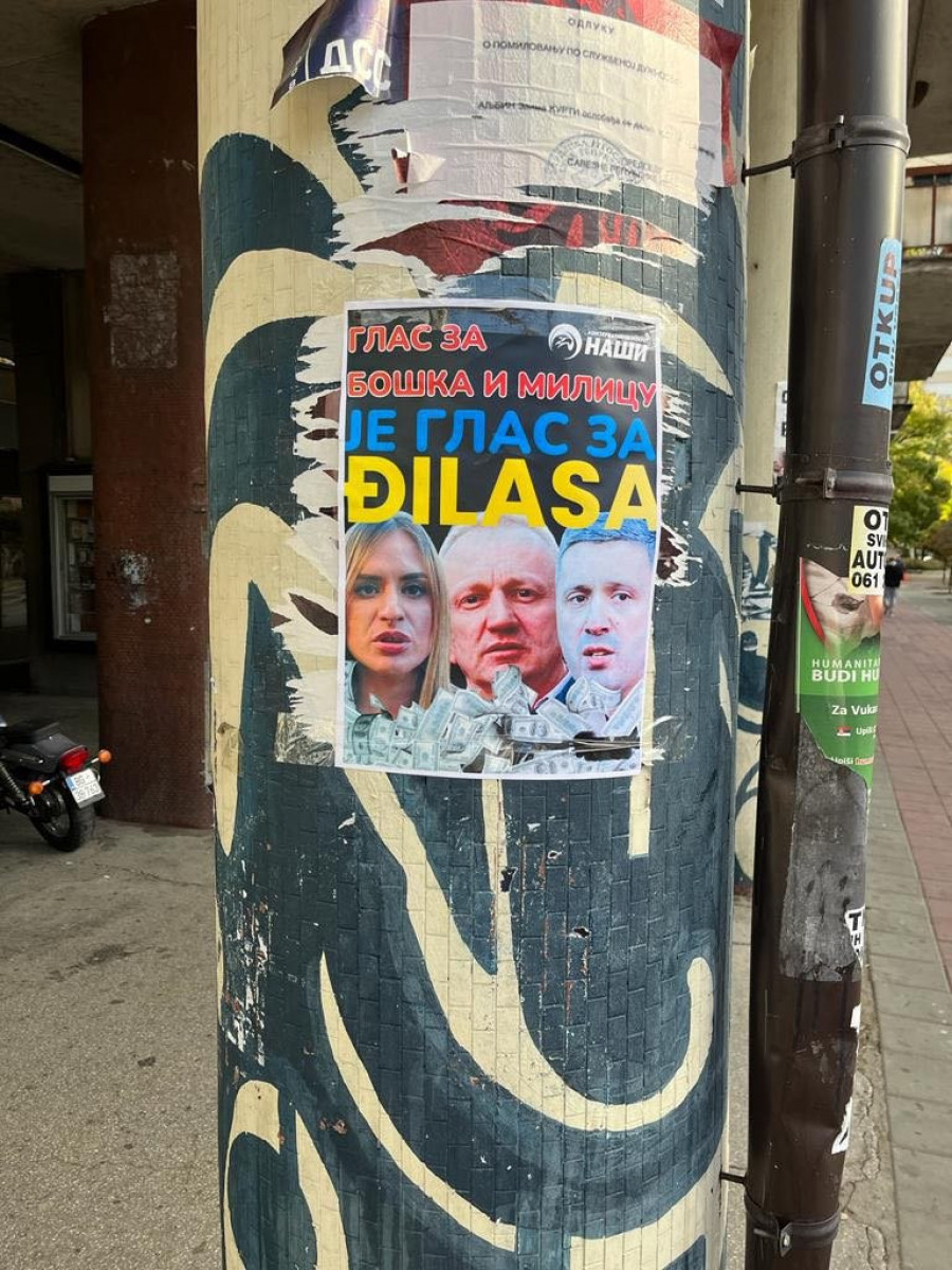 Konzervativni pokret Naši započeo je akciju lepljenja plakata na kojima se nalaze Boško Obradović lider Dveri, zatim Milica Đurđević Stamenkovski lider Zavetnika i tajkun Dragan Đilas, uz natpis „Glas za Boška i Milicu je glas za Đilasa“!