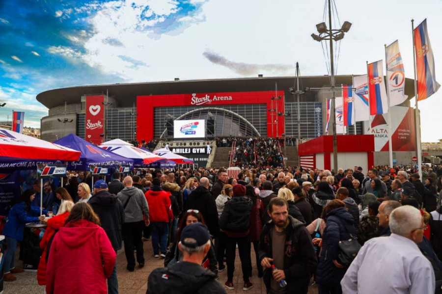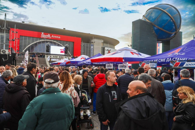 16.00- Ispred Arene u Beogradu već se okupljaju građani koji su došli da podrže listu "Srbija ne sme da stane".