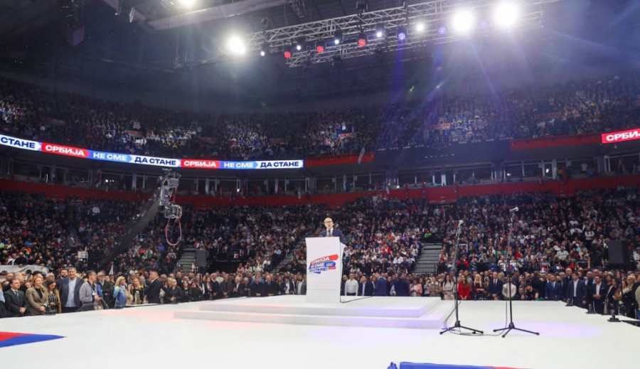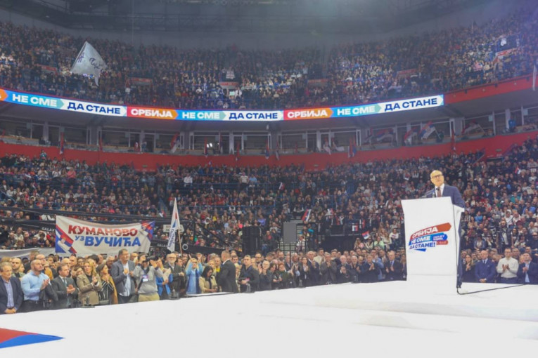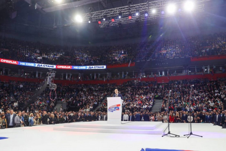 - Uz vašu energiju i snagu, vi ste snaga Srbije. Bez vas, mi nismo ništa. Na noge Arena, hajmo svi, za pobedu! Za pobedu 17. decembra, za najveću pobedu. 50 odsto moramo da dobijemo, da ih pobedimo da Srbija ima budućnost. Naredne četiri godine su najvažnije. Sve najbolje želim vašim porodicama, a u nedelju 17. da slavi pristojna, normalna, naša Srbija. Živela Srbija, beskrajno vam hvala - zaključio je Vučić.