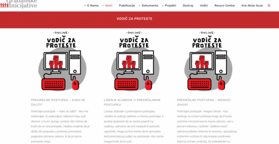 Paralelno sa promocijom Proglasa, zapadne službe aktivno rade na organizovanju drugih organizacija koje će biti aktivirane u obojenoj revoluciji. Na sajtu NVO Građanske inicijative postoji čak i "vodič za proteste" u kojem je detaljno objašnjeno kako njihovi istomišljenici treba da se ponašaju ukoliko budu privedeni na demonstracijama. Zanimljivo, taj deo sajta je ukrašen dobro prepoznatljivim simbolom pesnice koji je bio logo nekadašnjeg "Otpora", ali i Proglasa...
