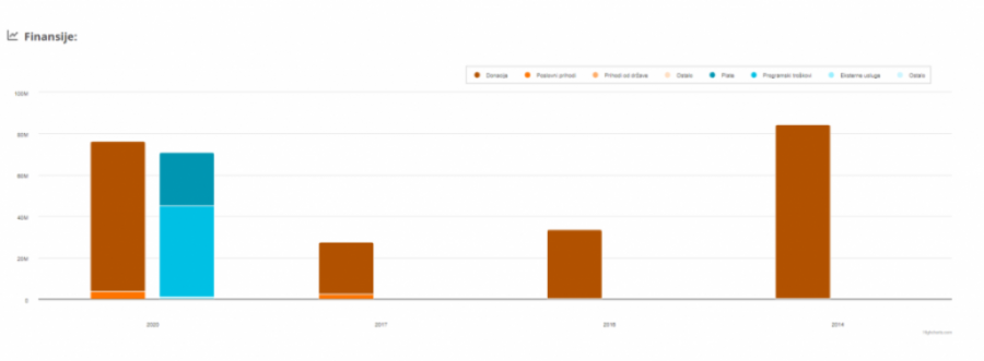Prema finansijskim izveštajima koje je ova NVO podnela samo za 2014, 2016, 2017. i 2020. godinu, prihodi ostvareni na tržištu iznose tek 5.999.000,00 dinara dok su donacije, koje su gotovo isključivo dolazile od stranih vlada, fondacija i udruženja iznosili gotovo 216 miliona dinara!