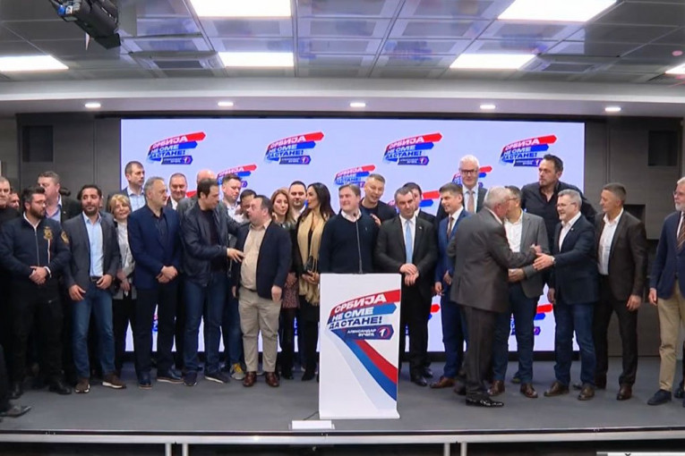 - Poštovani građani Srbije, mi ćemo vam saopštiti, nesumnjivo je najviše glasova osvojila lista "Srbija ne sme da stane"!