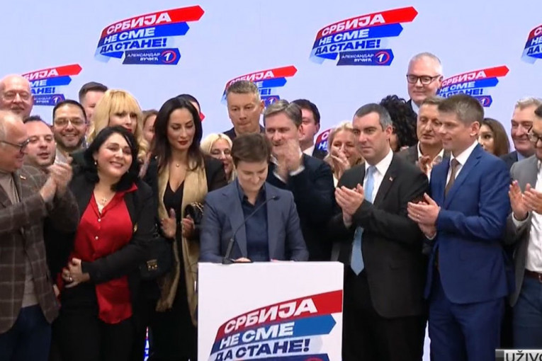 - Prema 50 procenata obrađenih glasačkih mesta, ja želim građanima da saopštim da lista "Srbija ne sme da stane" 47,1 odsto glasova. SNS će sama imati više od 125 mesta u parlamentu - rekla je Brnabić prilikom obraćanja medijima.