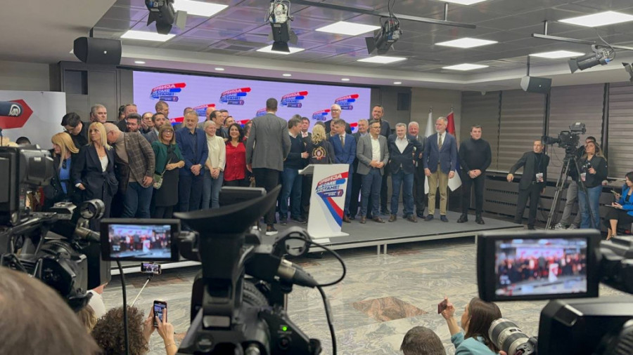 - Srbija ne sme da stane imaće 128 mandata, druga je Srbija protiv nasilja sa 66 mandata - rekao je tokom obraćanja predsednik SNS Miloš Vučević.