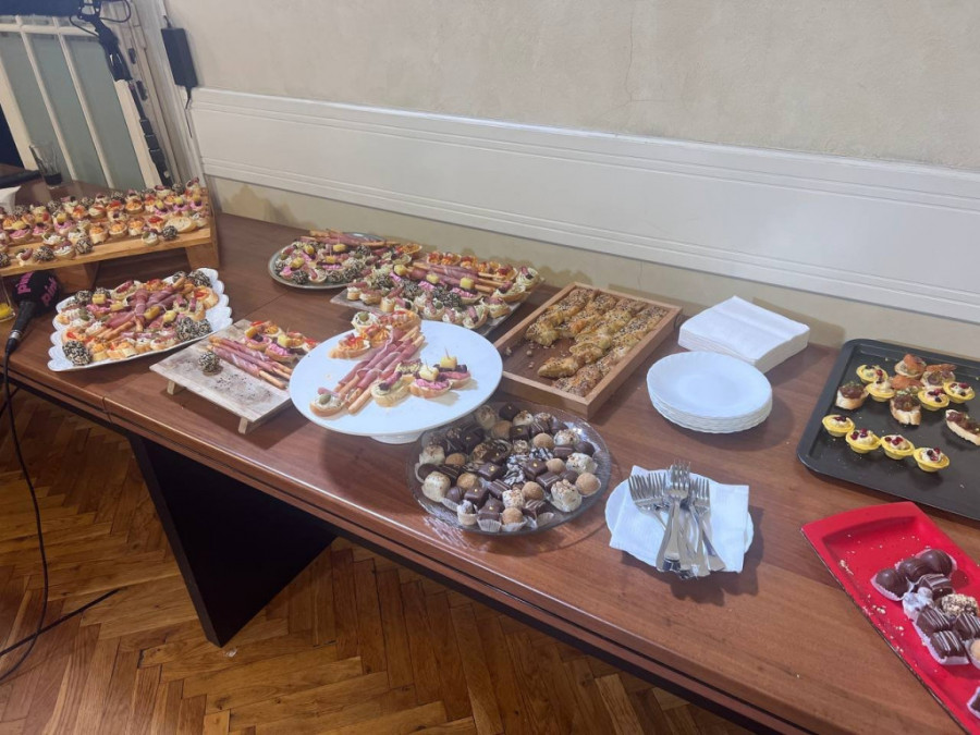 Tu su na stolu sve moguće vrste sireva, spring rolnice sa povrćem, brancin u belom vinu, pohovani oslić sa krompirom. Ne, ni tu nije kraj.