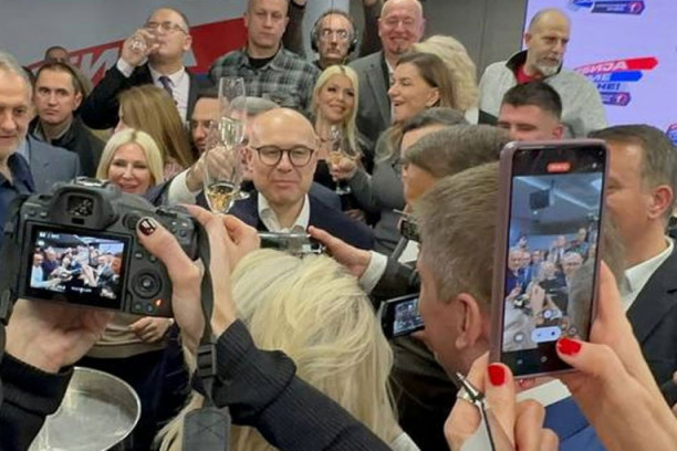 Reporterka sa lica mesta javlja da se slavi uz zvuke harmonike i pesmu "Ne može nam niko ništa, jači smo od sudbine", dok se služi šampanjac.