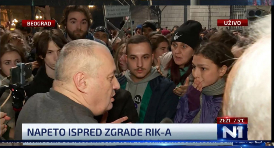 Tokom sinoćnjeg protesta "Srbije protiv nasilja" ispred Republičke izborne komisije (RIK) došlo je do rasprave između lidera opozicije Aleksandra Jovanovića Ćute i Srđana Milivojevića i grupe mlađih, radikalnijih demonstranata koji su bili razočarani u opoziciju, ispred kojih je stao mladi preduzetnik Nikola Ristić, optuživali ih za nedostatak plana i akcije i pozivali na upad u RIK što su Ćuta i Milivojević odbili.
