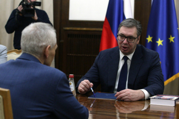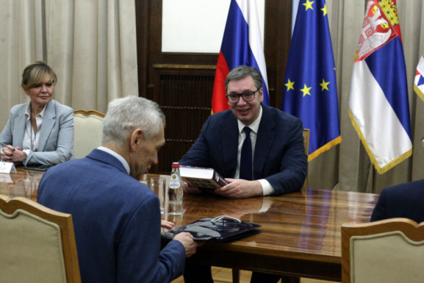 Na samom početku sastanka, ruski ambasador je predsedniku Vučiću poklonio knjigu "Strogo poverljivo", dela bivšeg diplomate i dugogodišnjeg ambasadora SSSR-a u Vašingtonu.