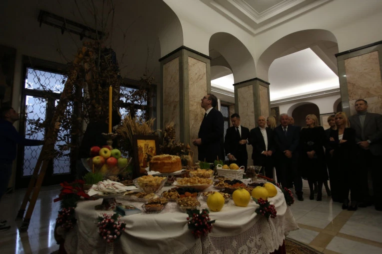 ALEKSANDAR VUČIĆ UNEO BADNJAK U ZGRADU PREDSEDNIŠTVA: Osveštao ga vladika Stefan! (VIDEO)