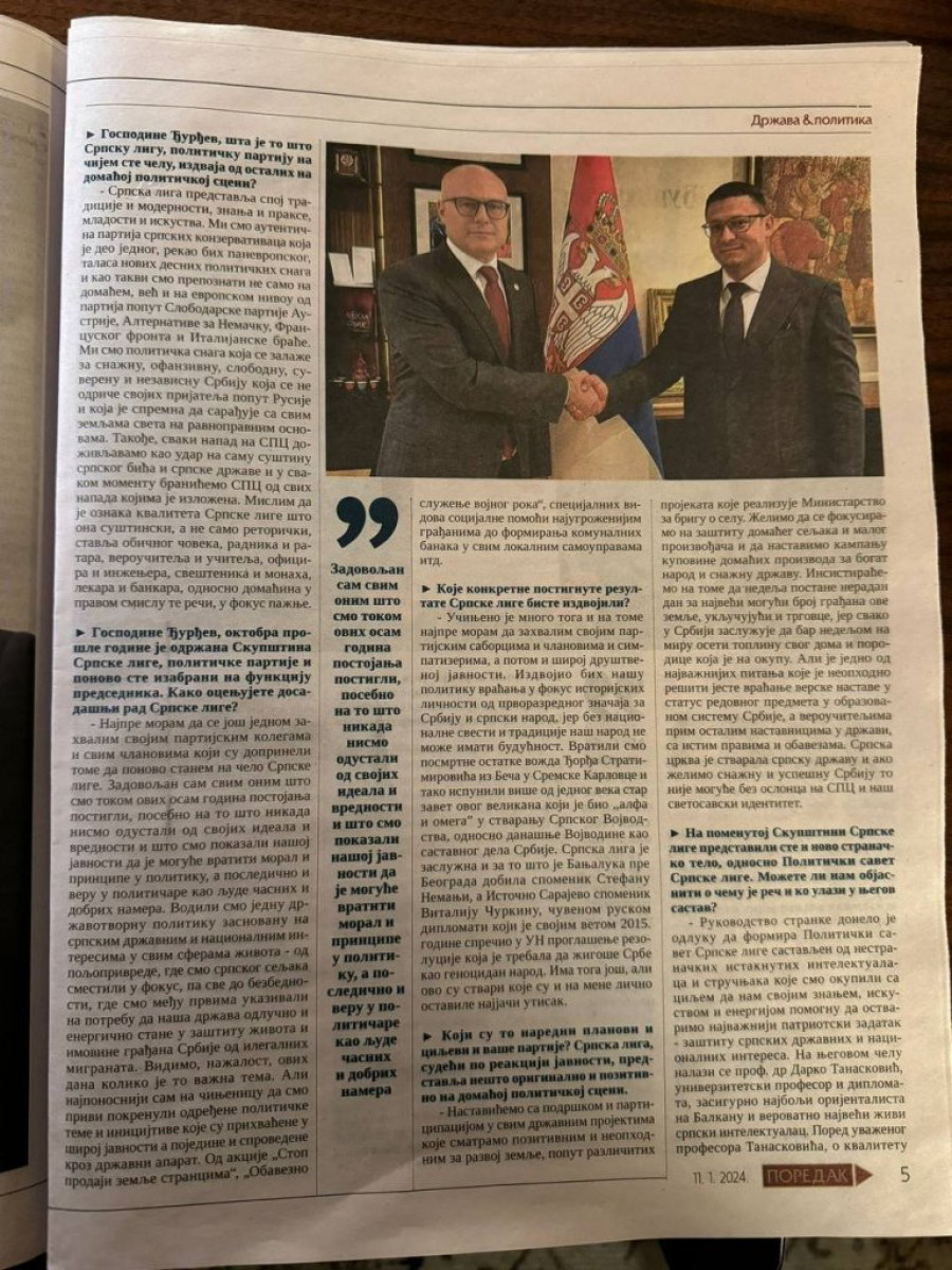 U intervju za najnoviji broj nedeljnika Poredak Aleksandar Đurđev, predsednik Srpske lige u pitanju