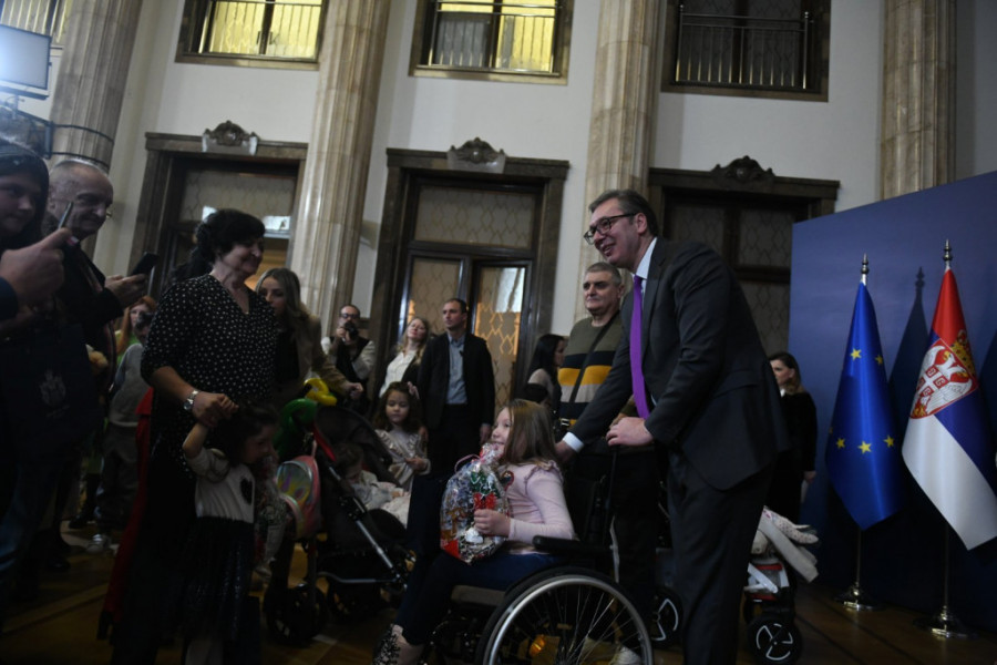 Vučić je u podne održao sastanak sa predstavnicima Udruženja i roditelja dece obolele od retkih bolesti. Prijemu su prisustvovali i supruga predsednika Tamara Vučić, ministar za rad, zapošljavanje, boračka i socijalna pitanja Nikola Selaković i ministarka za brigu o porodici Darija Kisić.