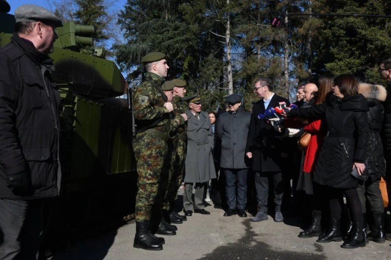Predsednik Srbije Aleksandar Vučić prisustvuje u kasarni Topčider statičkom prikazu sredstva naoružanja i vojne opreme Vojske Srbije.