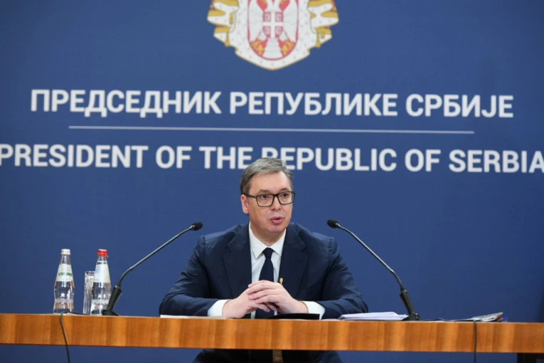 Predsednik Srbije Aleksandar Vučić obraća se javnosti iz Palate Srbija.