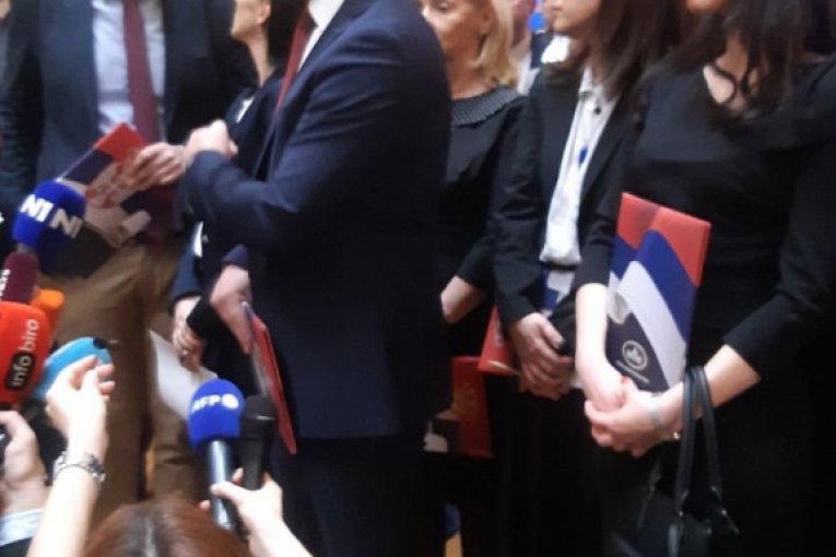 "Zaklinjem se da ću dužnost narodnog poslanika obavljati predano, pošteno, savesno i verno Ustavu, braniti ljudska i manjinska prava i građanske slobode i po najboljem znanju i umeću služiti građanima Srbije, istini i pravdi!"