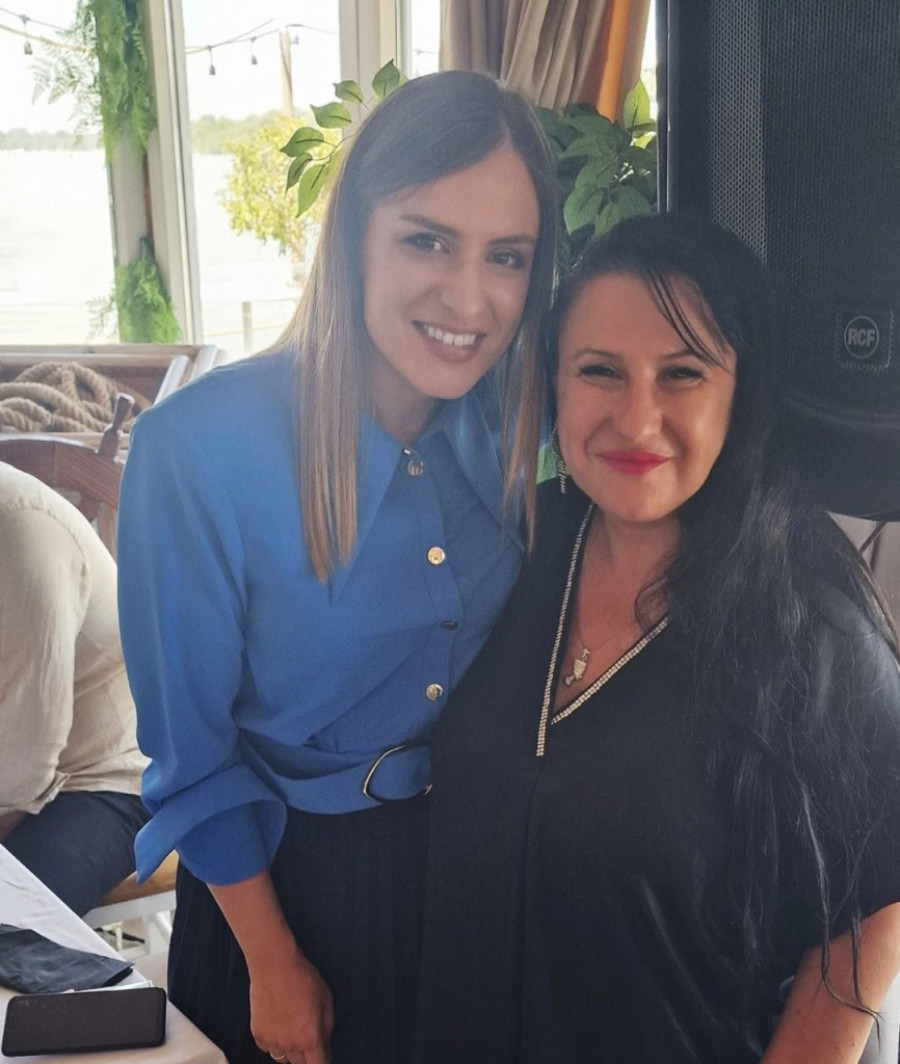 Milica Đurđević Stamenkovski, predsednica političke partije Zavetnici u zagrljaju sestre Mirjane Đurđević, poznate srpske glumice.