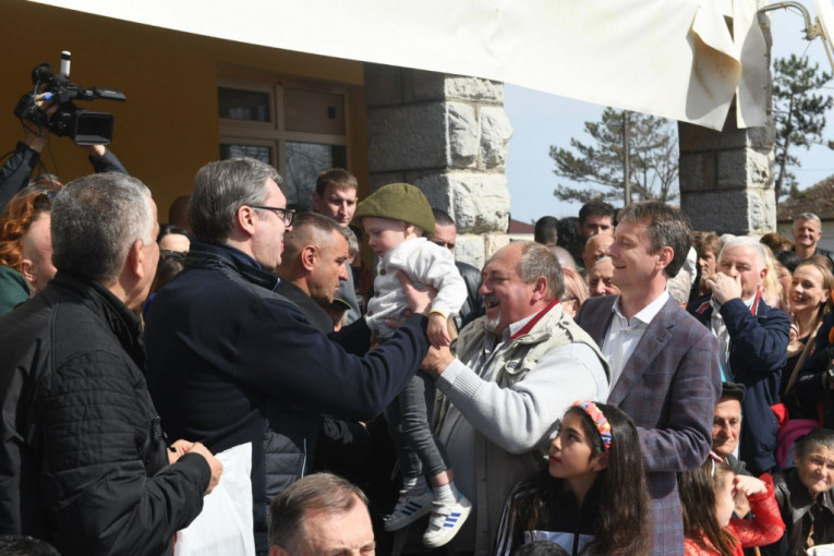 Predsednik Vučić se slikao, razgovarao i rukovao sa svim okupljenim meštanima.
