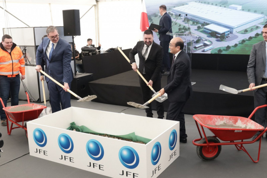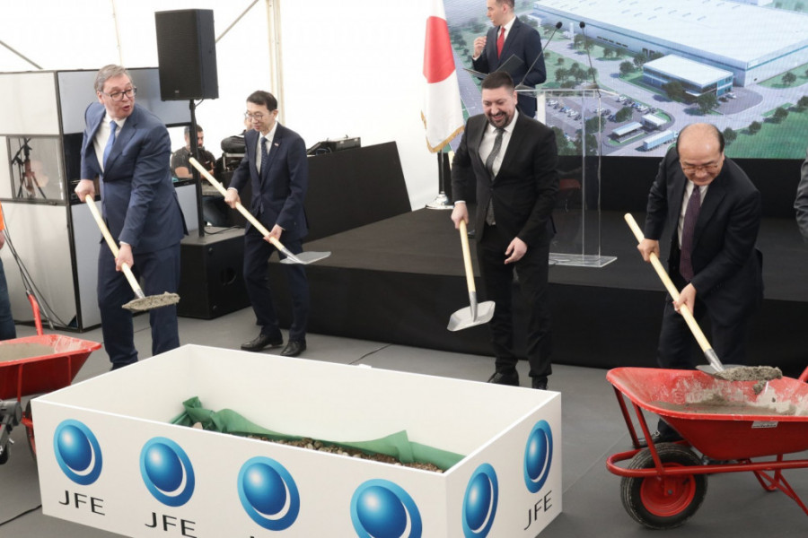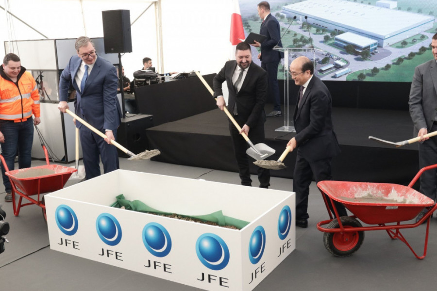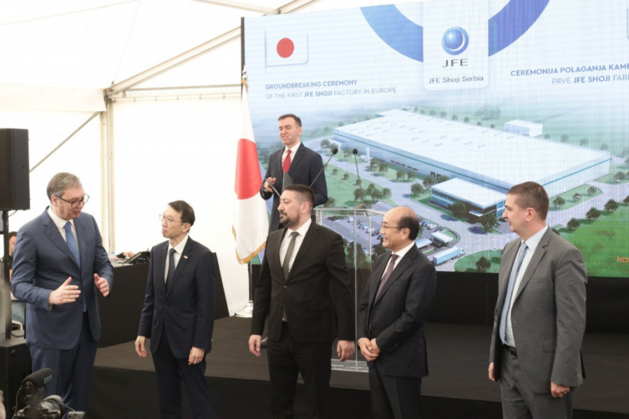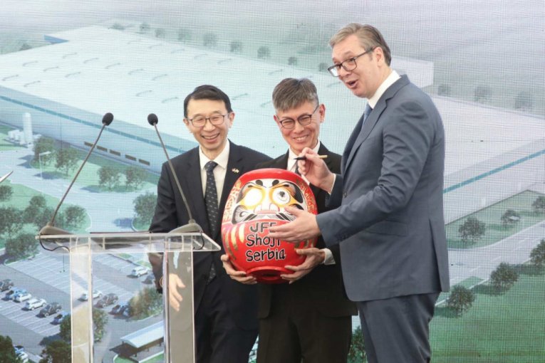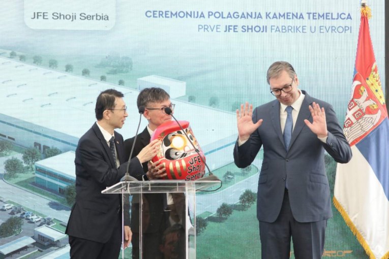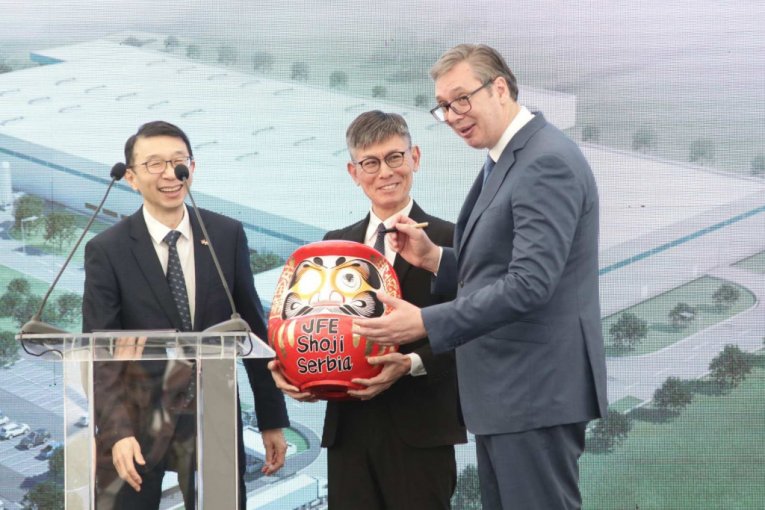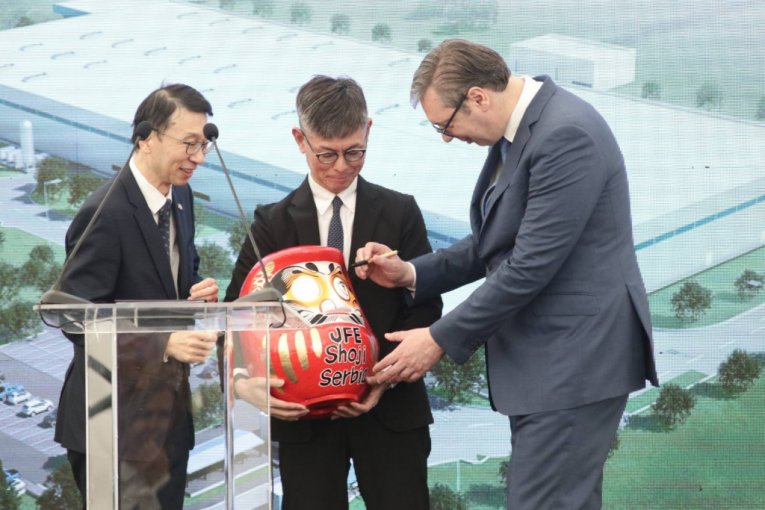 Predsednik Srbije Aleksandar Vučić prisustvuje danas ceremoniji obeležavanja početka radova na izgradnji nove fabrike kompanije JFE Shoji Serbia d.o.o u Inđiji.