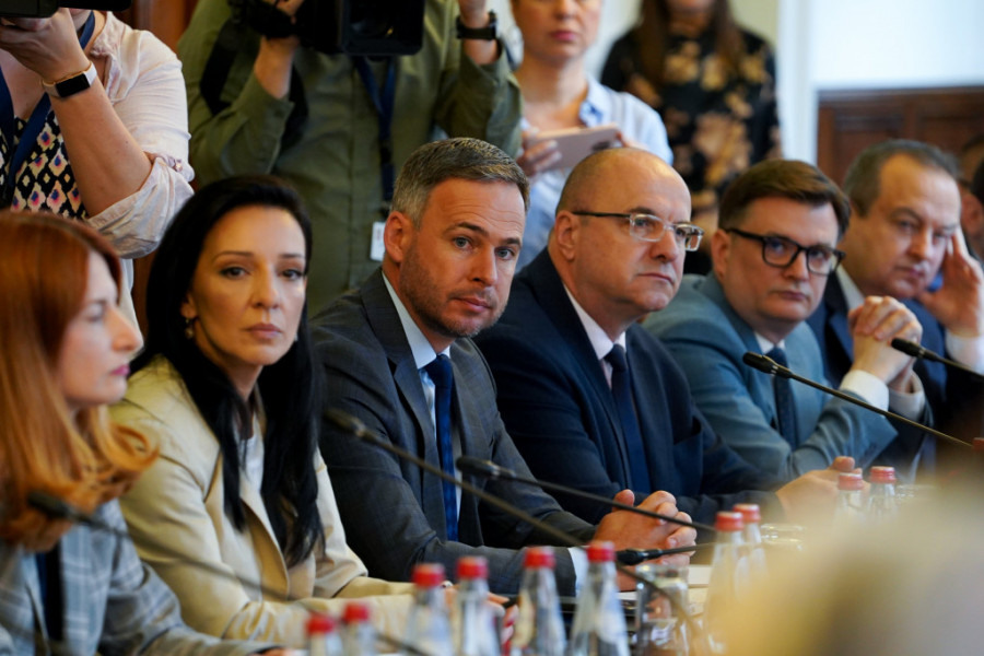 Pored predsednice parlamenta Ane Brnabić i predstavnika vladajuće koalicije i dela opozicionih poslanika, sastanku su prisustvovali i američki ambasador Kristofer Hil, kao i šef delegacije Evropske unije u Srbiji Emanuele Žiofre.
