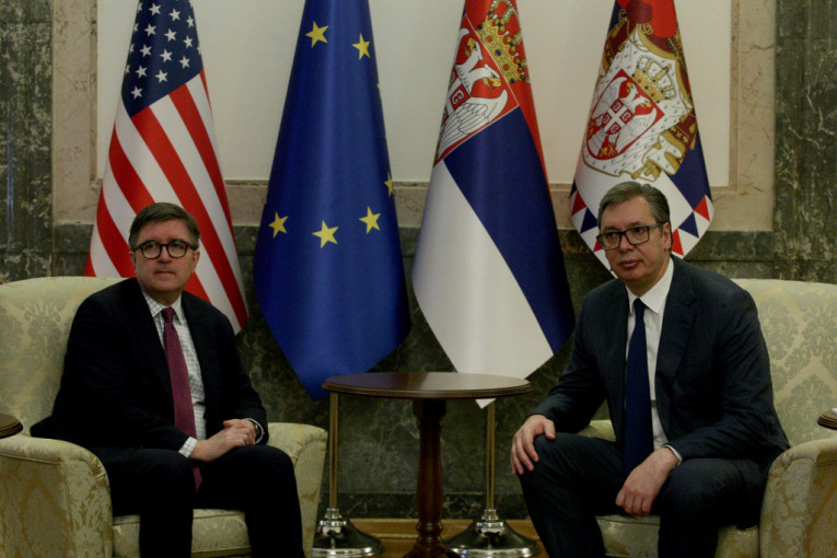 - Imao sam dobar razgovor sa predsednikom danas, to je deo programa u kom ću se videti i sa drugim predsednicima. Uvek je lepo vratiti se u Beograd. Jedna od tema danas bila je upravo to kako uspeva da razgovara sa svim zvaničnicima. Počeli smo razgovor o putu na sednicu u UN, moram da budem jasan po pitanju američkog stava. Kosovo je obećalo da će sprovesti obavezu da osnuju SZO, to je od ključnog značaja. Učinićemo sve da pomognemo i ispunimo obećanja. Očekujem da će to biti tema u Njujorku. Hoću da govorim i o glasanju u UN u Savetu bezbednosti po pitanju genocida. I u mojoj zemlji je bilo razgovora o našoj istoriji. O mnogim temama smo danas zajedno pričali. Vlada Srbije je dobar partner vlade SAD. Ono što je posebno bitno to je da donesemo četiri slobode na kojima počiva EU. Sloboda kretanja, vlada SAD je ohrabrena time da se nastave razgovori pristupanju. Predsednik Vučić je glavni zagovornik, želimo da nastavimo ka tome da granice igraju što manju ulogu - rekao je on posle sastanka.