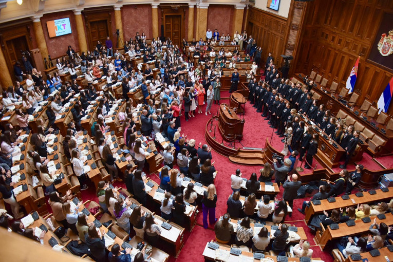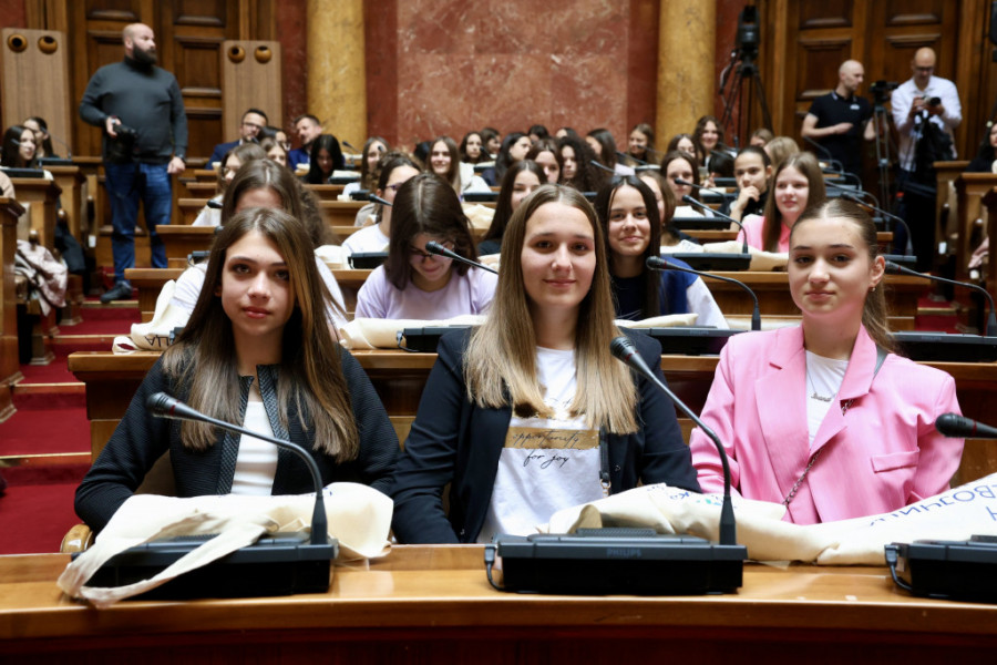 - Ovo je vaš dom. Hvala vam što ste prihvatili naš poziv da zajedno ovde obeležimo Međunarodni dan devojčica u IKT sektoru. Želim da vam kažem da ćemo se i mi kao skupština truditi da se još više otvorimo za vas, za vaše roditelje, nastavnike, profesore, mentore, kojima takođe zahvaljujemo što su danas ovde sa nama i na svom trudu, radu i zalaganju, da bi ovakve stvari kao što imamo danas radili više. I na kraju krajeva, zakoni se ne donose u nekom izolovanom prostoru, ti zakoni koje mi donosimo ovde se tiču svih vas. Možete sve što želite. Možete sve ono o čemu sanjate, verujte ukoliko ste posvećeni tome, verujete u sebe, radite, učite, možete sigurno- rekla je predsednica Narodne skupštine Republike Srbije, Ana Brnabić.