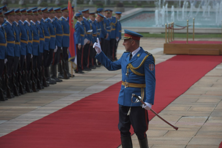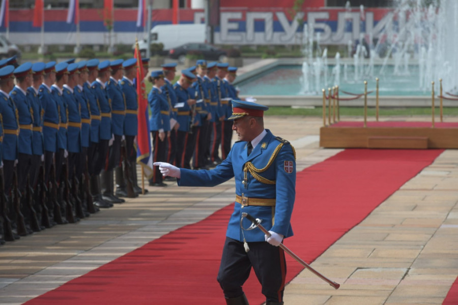 Predsednik Aleksandar Vučić priredio je danas za predsednika Kine Si Đinpinga svečani doček ispred Palate "Srbija", uz 10 počasnih plotuna iz 10 artiljerijskih oruđa, intoniranje himne i smotru počasne garde.