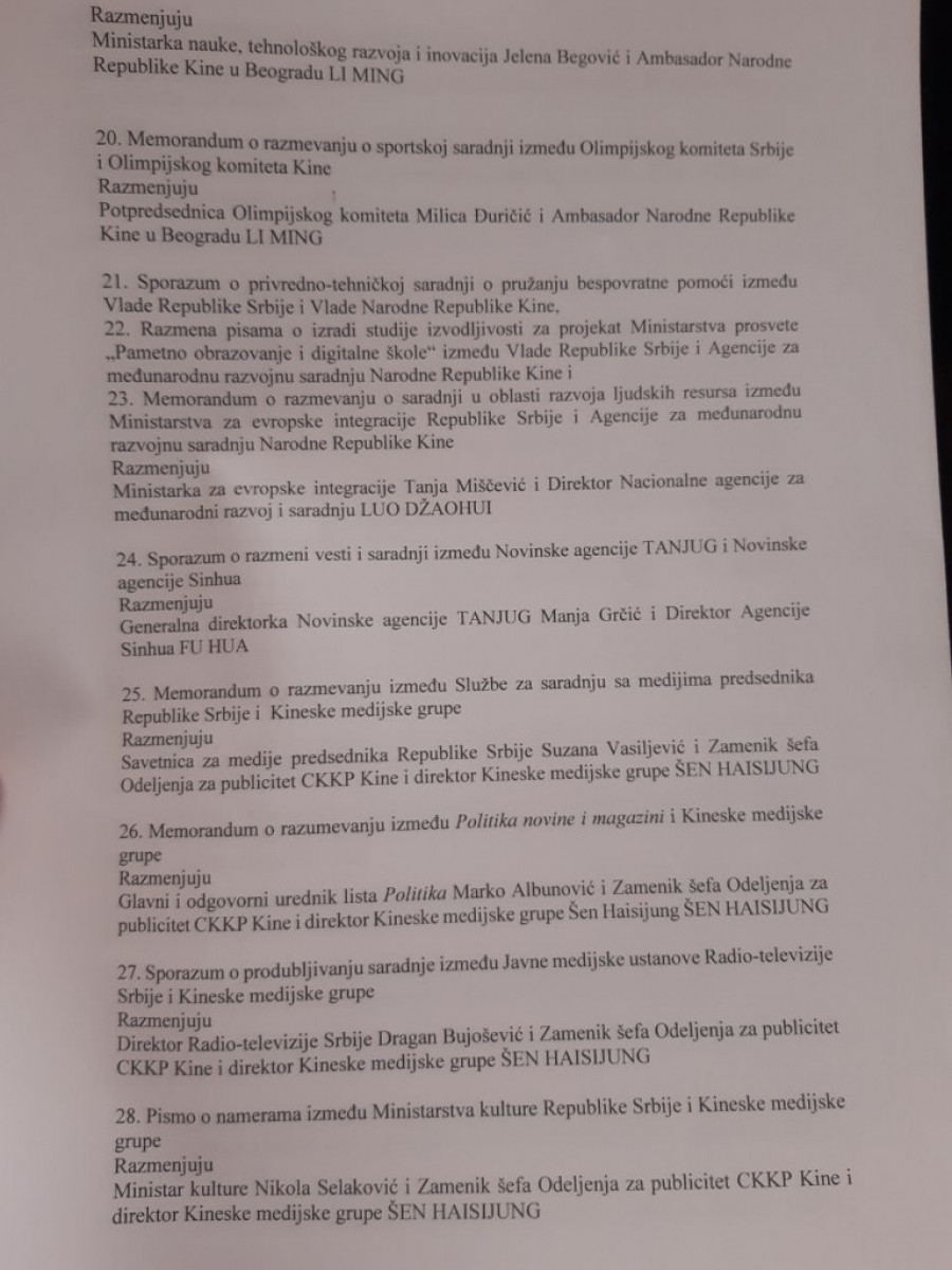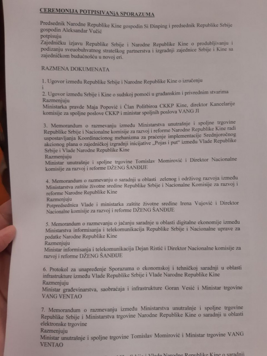 OTKRIVAMO! OVO SU SVI SPORAZUMI KOJE DANAS POTPISUJU KINA I SRBIJA: Ima ih 28 i svaki je značajan! (FOTO)