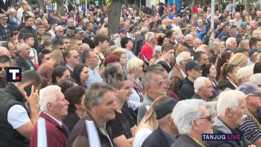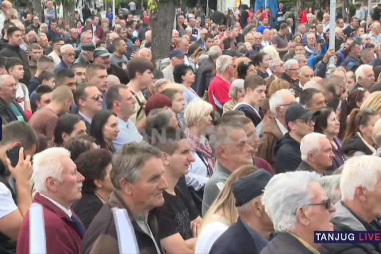 18.00 - Miting je počeo izvođenjem himne "Bože pravde".