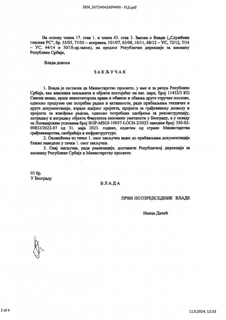 1. Da li je tačno da ste arhitektonskom studiju "Bureau cube partners DOO" iz Beograda neosnovano uskratili pravo na naknadu za poslove koje je studio obavio vezano za projekat rekonstrukcije i dogradnje Fakulteta likovnih umetnosti?