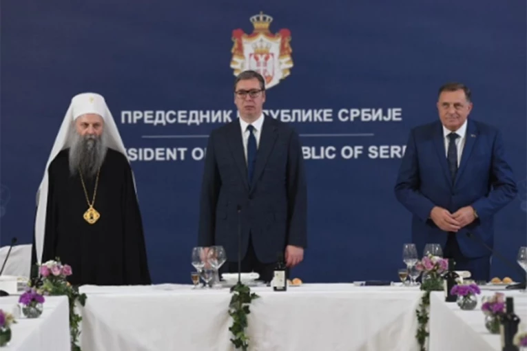 Predsednik Republike Srbije Aleksandar Vučić ugostio je danas na ručku patrijarha srpskog Porfirija, Sveti arhijerejski Sabor SPC i predsednika Republike Srpske Milorada Dodika.