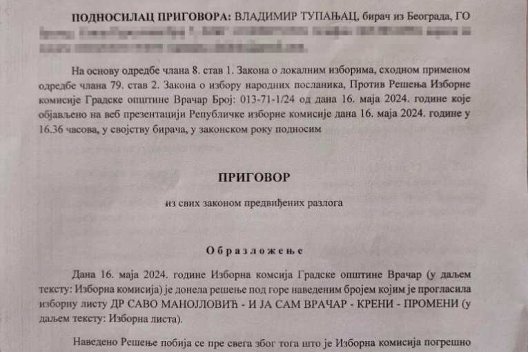 TUPANJAC IZ CRTE PODNEO PRIGOVOR PROTIV LISTE SAVA MANOJLOVIĆA NA VRAČARU! Nema dovoljno potpisa, niti dovoljan broj kandidata manje zastupljenog pola! (FOTO)