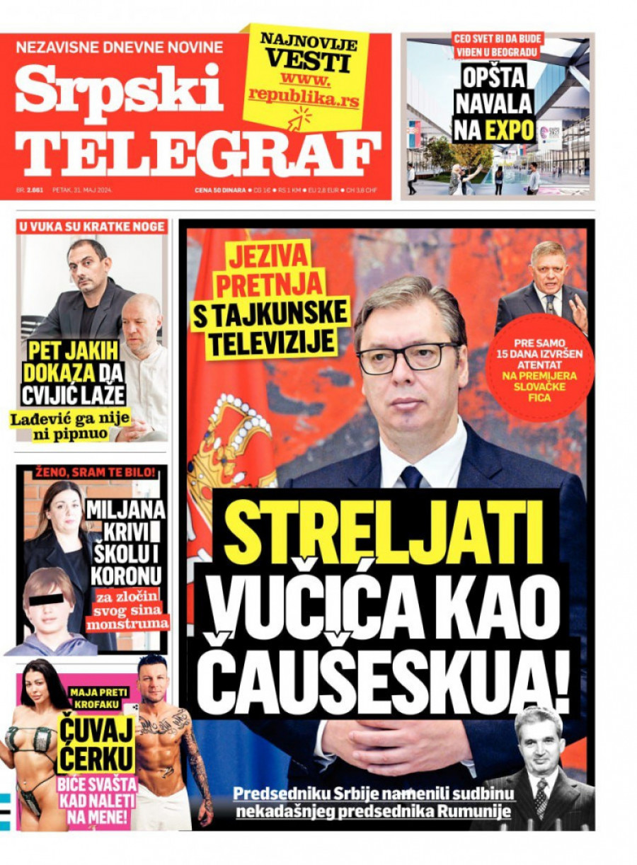 Srpski telegraf u izdanju za petak 31. maja donosi pregršt važnih i interesantnih priča!