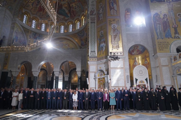 Patrijarh Porfirije stigao je u Hram Svetog Save. Moleban za Republiku Srbiju i Republiku Srpsku je počeo. Molebanu prisustvuju i predsednik Vučić, predsednik RS Milorad Dodik, predsednika Skupštine CG Andrija Mandić, kao i svi drugi zvaničnici.