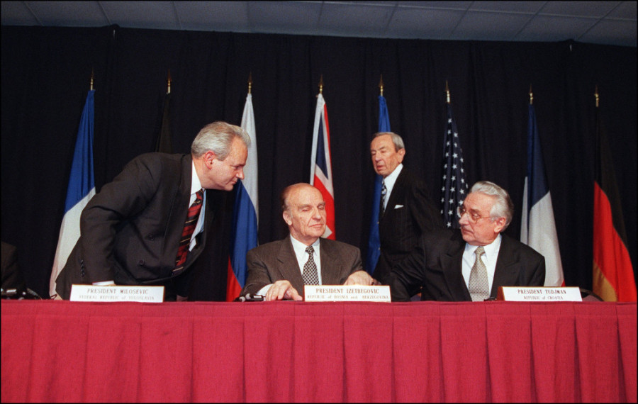- posle tronedeljnih pregovora, uz posredovanje SAD, 21. novembra 1995. parafiran je Dejtonski mirovni sporazum kojim je okončan rat u u BiH Foto: Profimedia John Ruthroff Afp Profimedia