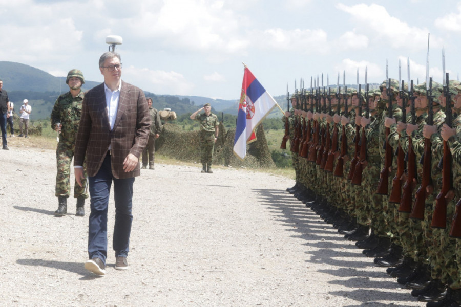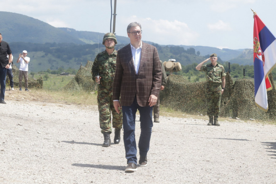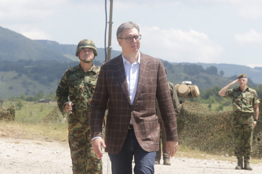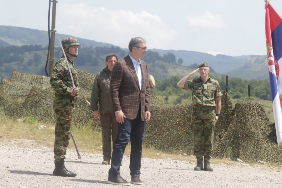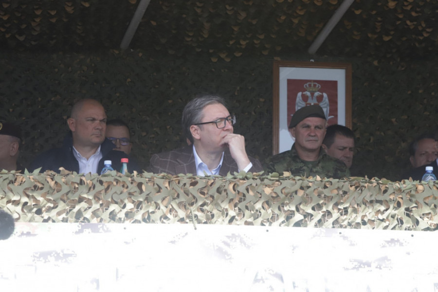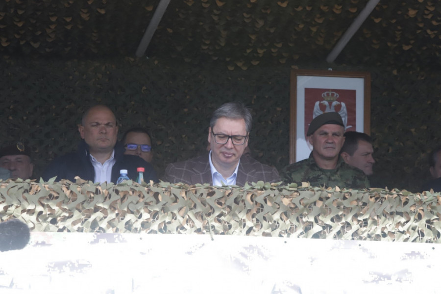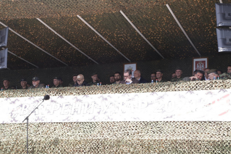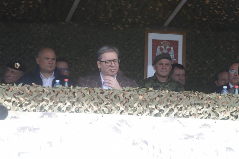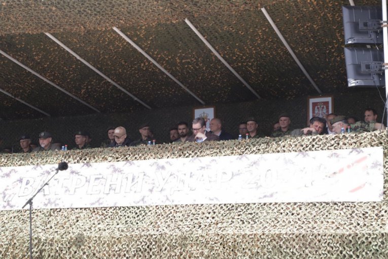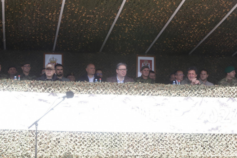 Predsednik Srbije Aleksandar Vučić prisustvuje danas Danu visokih zvanica na opitnoj združenoj taktičkoj vežbi s bojevim gađanjem "Vatreni udar 2024".