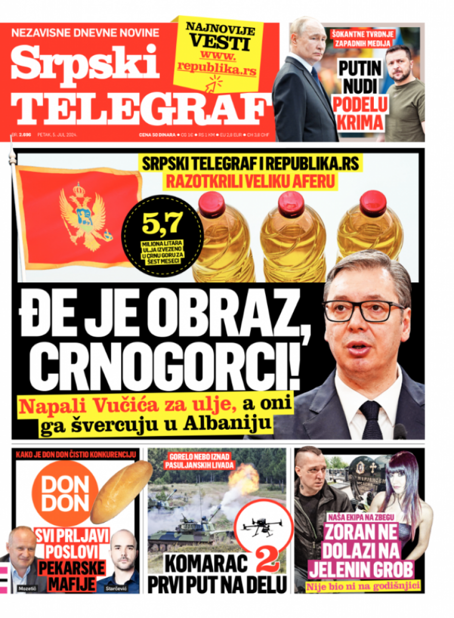 CRNOGORCI, ĐE VAM JE OBRAZ? Napali Vučića za ulje, a oni ga švercuju u Albaniju! ČITAJTE U SRPSKOM TELEGRAFU!