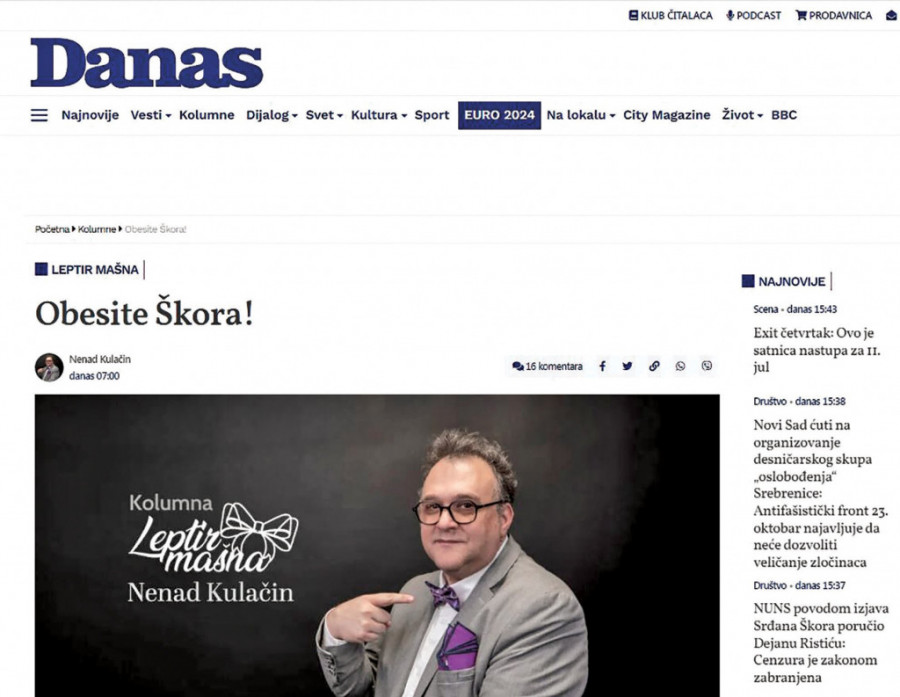 Naime, list Danas objavio je u jučerašnjem izdanju tekst "Obesite Škora" autora Nenada Kulačina, gde je naveo da je Škoro pogrešio jer bi, umesto uranijuma, trebalo koristiti sumpornu kiselinu!