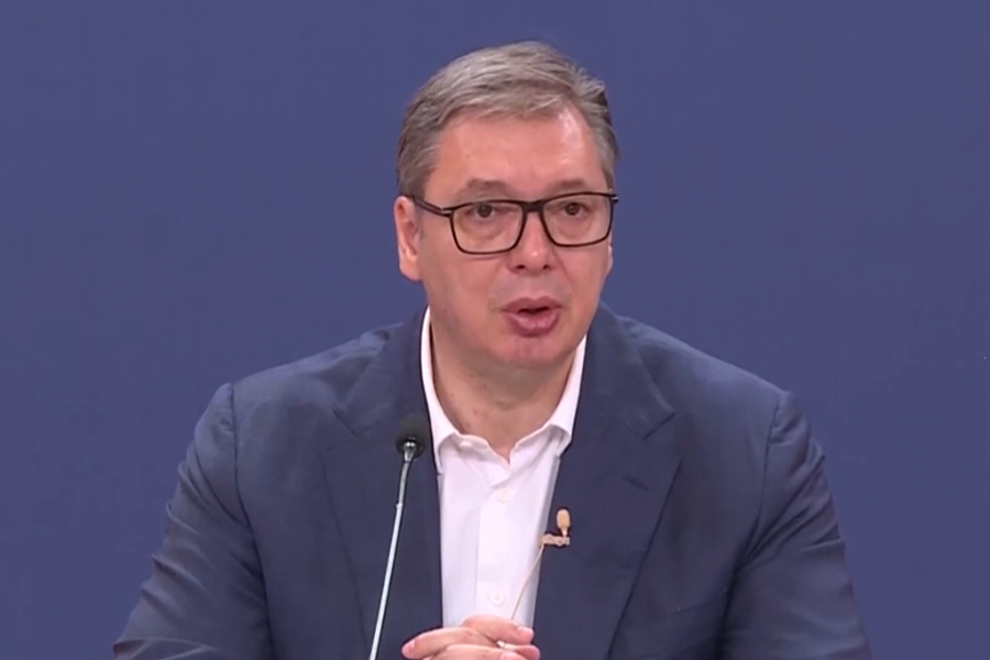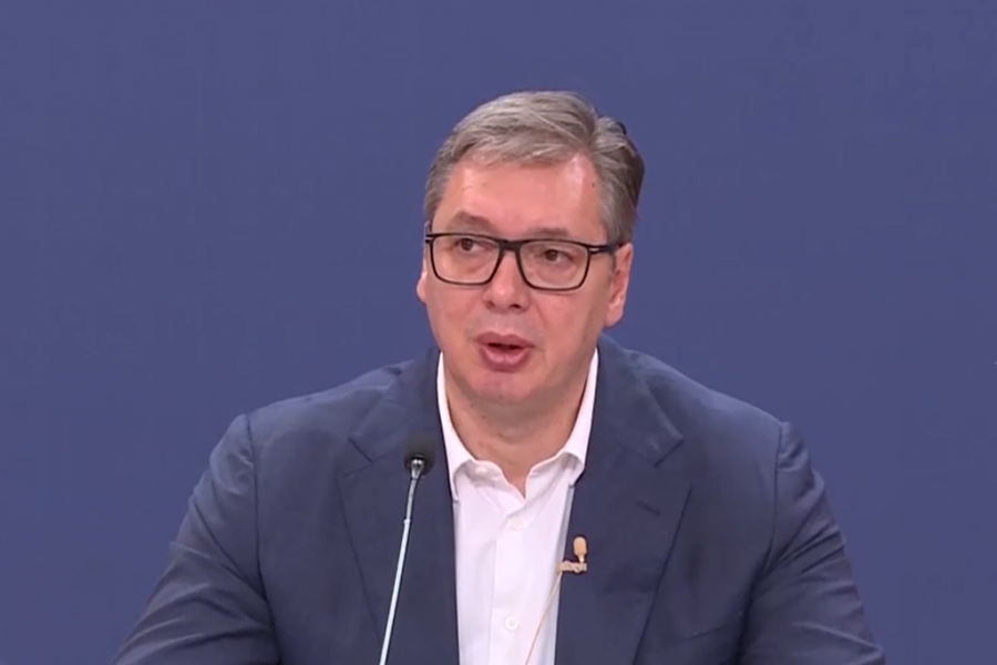 Predsednik Republike Srbije Aleksandar Vučić se obraća javnosti iz Palate Srbija i govori o aktuelnim temama.