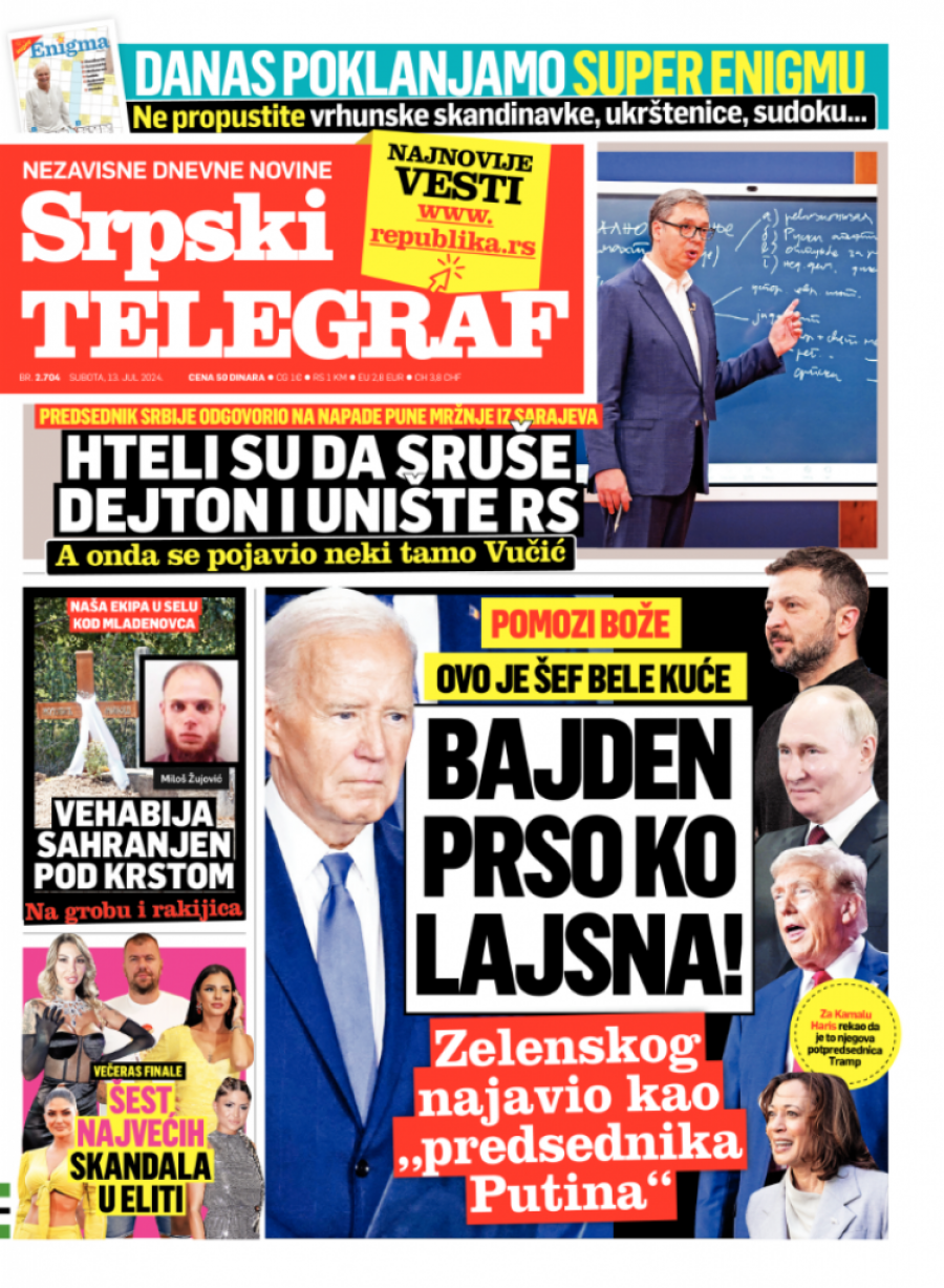 Srpski telegraf u izdanju za subotu 13. jul vam donosi pregršt važnih i interesantnih priča!