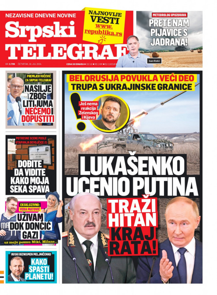 Srpski telegraf u izdanju za četvrtak 17. jul donosi pregršt važnih i interesantnih priča!