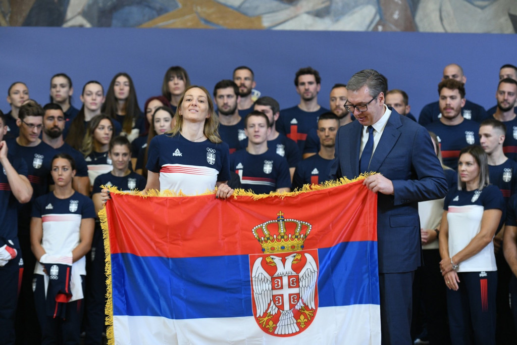 Predsednik Aleksandar Vučić uručuje danas u Beogradu sportistima i članovima olimpijskog tima Srbije državnu zastavu koju će nositi na Olimpijskim igrama u Parizu.