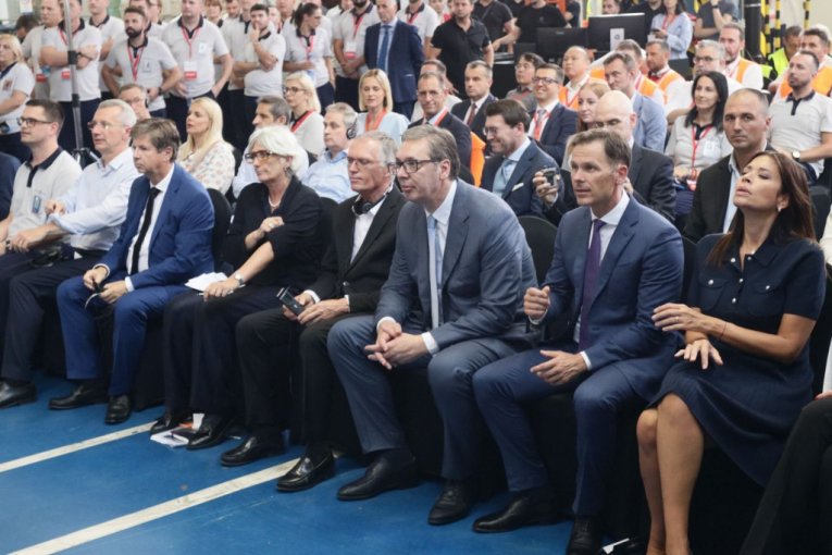 Predsednik Srbije Aleksandar Vučić prisustvovao je svečanosti povodom inauguracije novih proizvodnih linija za buduću proizvodnju električnih vozila u modernizovanoj fabrici "Stelantis" u Kragujevcu.
