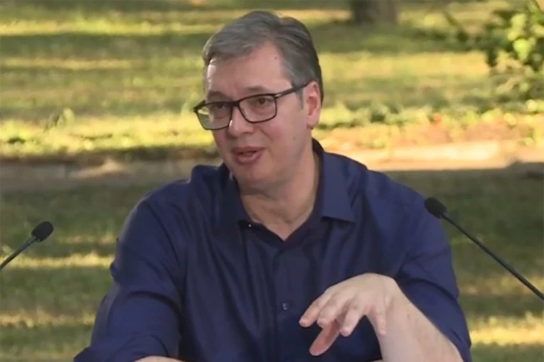 - Ne govorite vi ovde ni o Ani Brnabić, Dubravki, Vučeviću, ovde vam smetam ja. To je sve naredio jedan tajkun, kriminalac, Dragan Šolak, kojem sam se suprotstavio u želji da upravlja ovom zemljom. Ponosan sam na tu činjenicu što sam ja taj čovek, što se ne plašim njegovih veza ni u CIA, ni gde hoćete. 12 godina sam posvetio teškog i napornog rada. Nisam u tih 12 proveo ni jedan godišnji odmor u celini. Nisam bio dobar roditelj svojoj odrasloj deci, oni su moji sin i ćerka, nisam im bio dobar roditelj u tih 12 godina, nisam bio dobar roditelj ni trećem detetu, vreme je da razmišljam o tome šta ću drugo. Ovo vam je moja ponuda, nemojte da se maltretirate da gubite vreme, 75 potpisa donesite, obezbediću vam ja ostatak potpisa, idemo pre kraja godine na referendum o opozivu predsednika. Ja ću da se borim protiv vas i tad. Nemojte da zaluđujete narod, vi to radite zbog mene. Hoćete meni da vidite leđa. Skupite samo, ima vas toliko, skupite 70, daćemo sve što vam je potrebno za dve trećine. Treba samo 50 odsto sve zajedno da skupite ko sad što ste skupili i s koca i konopca. Nikakav problem nije. I više nisam predsednik, neću ni da čekam kraj mandata.