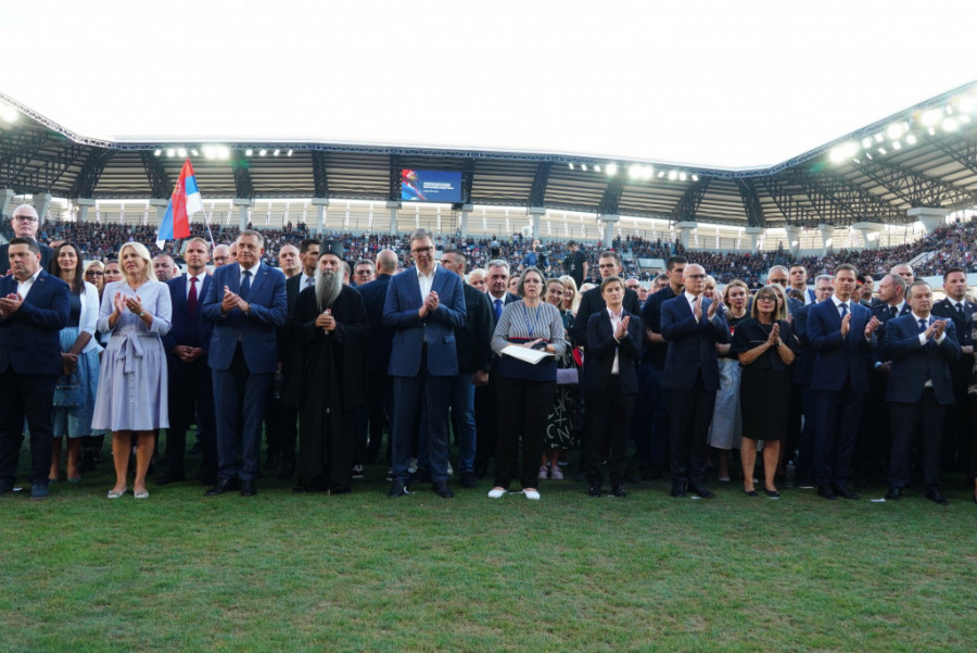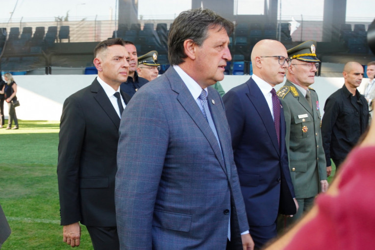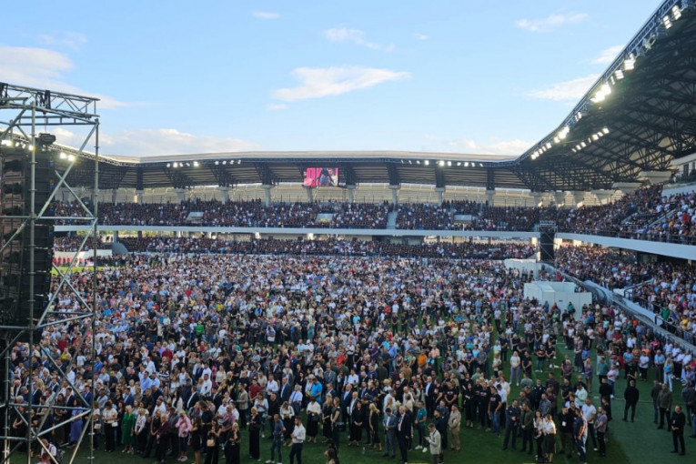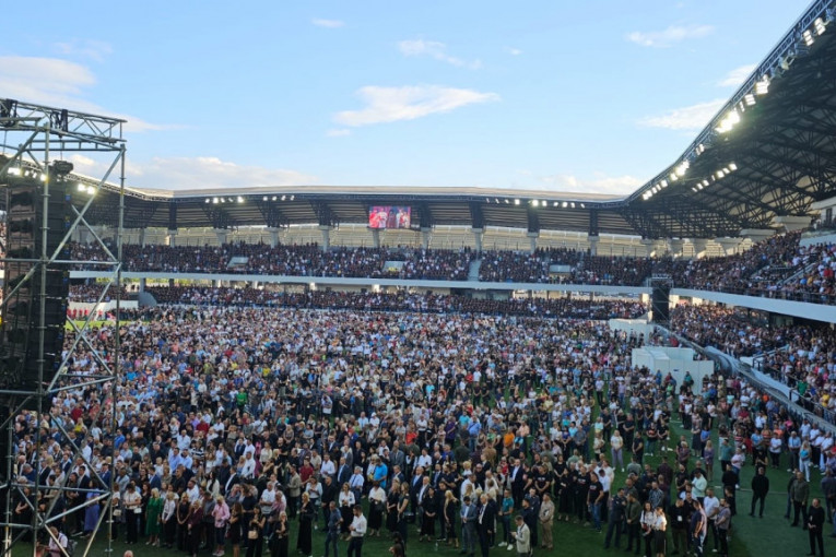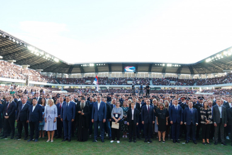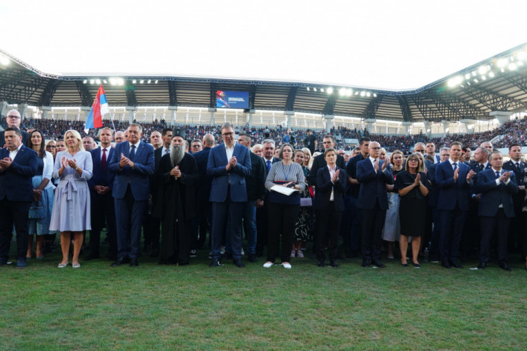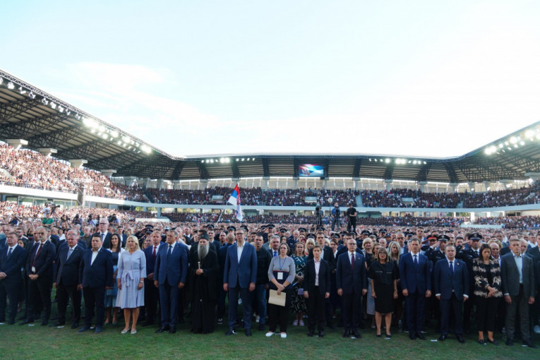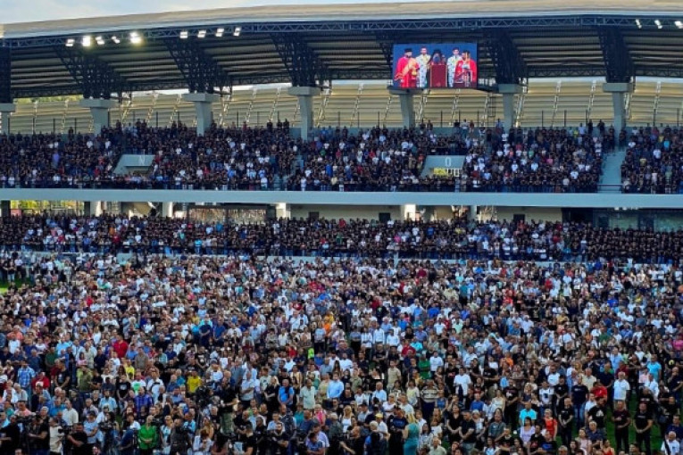 Na stadionu Lagator su se okupili predstavnici celokupnog državnog vrha, kao i Patrijarh Porfirije i starešine SPC.