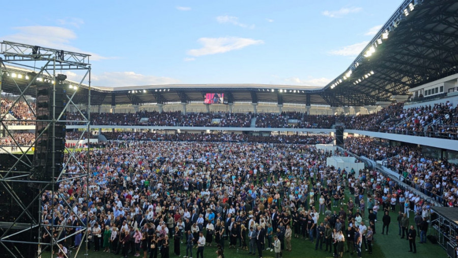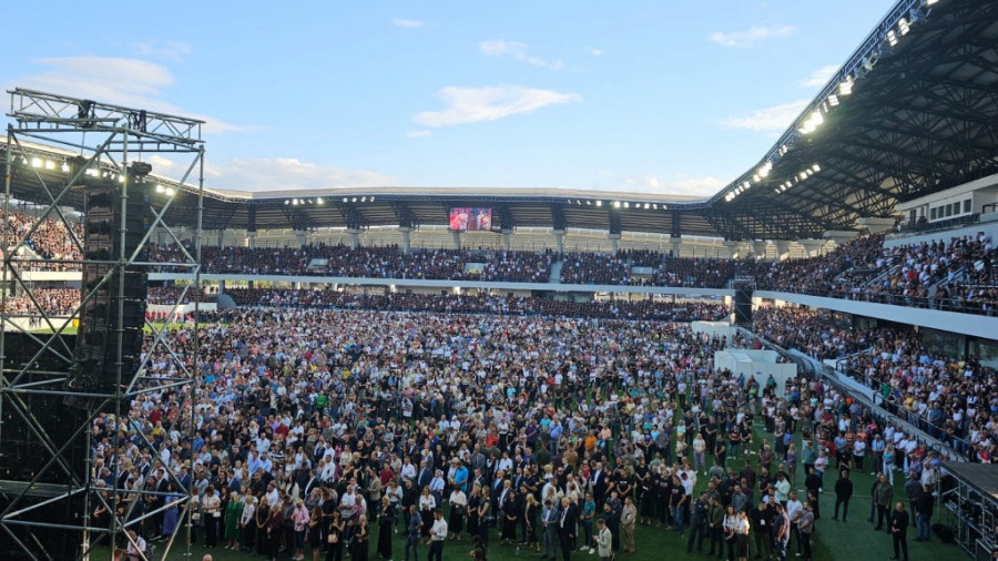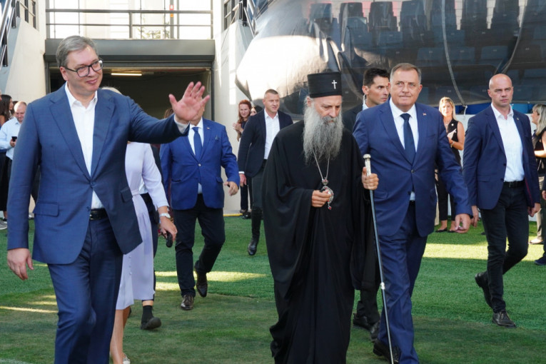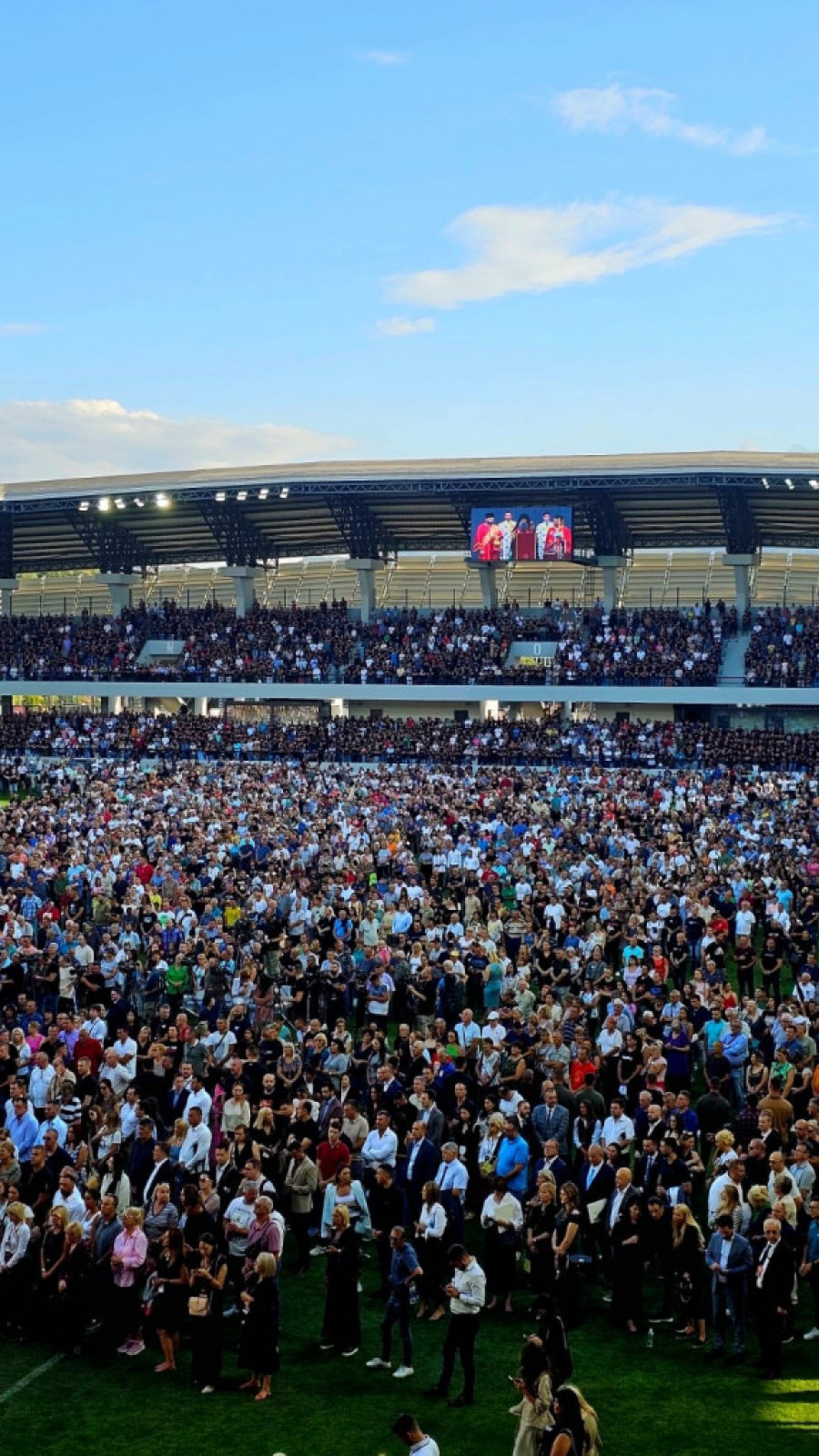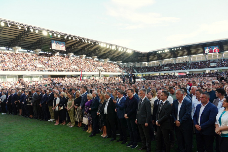 Na stadionu Lagator su se okupili predstavnici celokupnog državnog vrha, kao i Patrijarh Porfirije i starešine SPC.