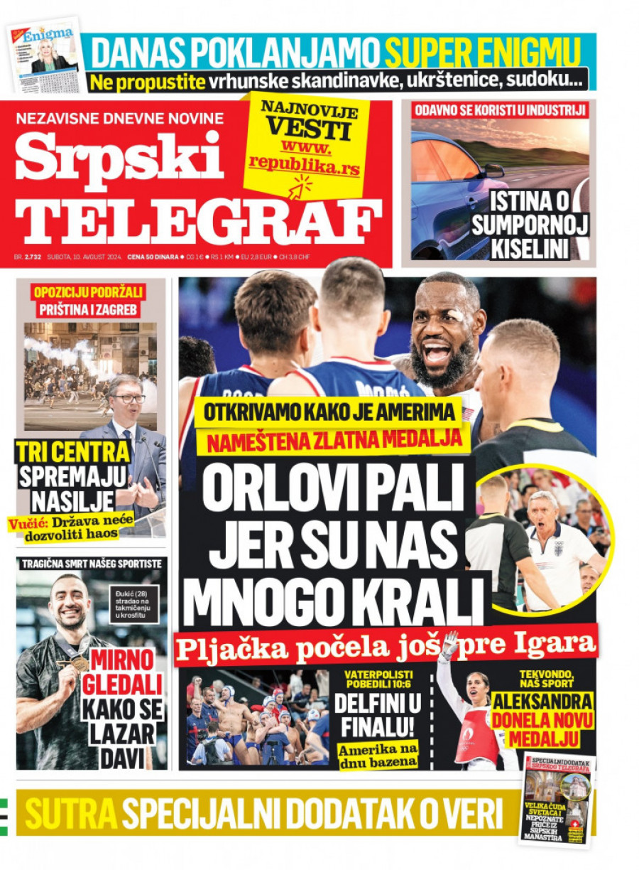 Srpski telegraf u izdanju za subota 10. avgust donosi pregršt važnih i interesantnih priča!