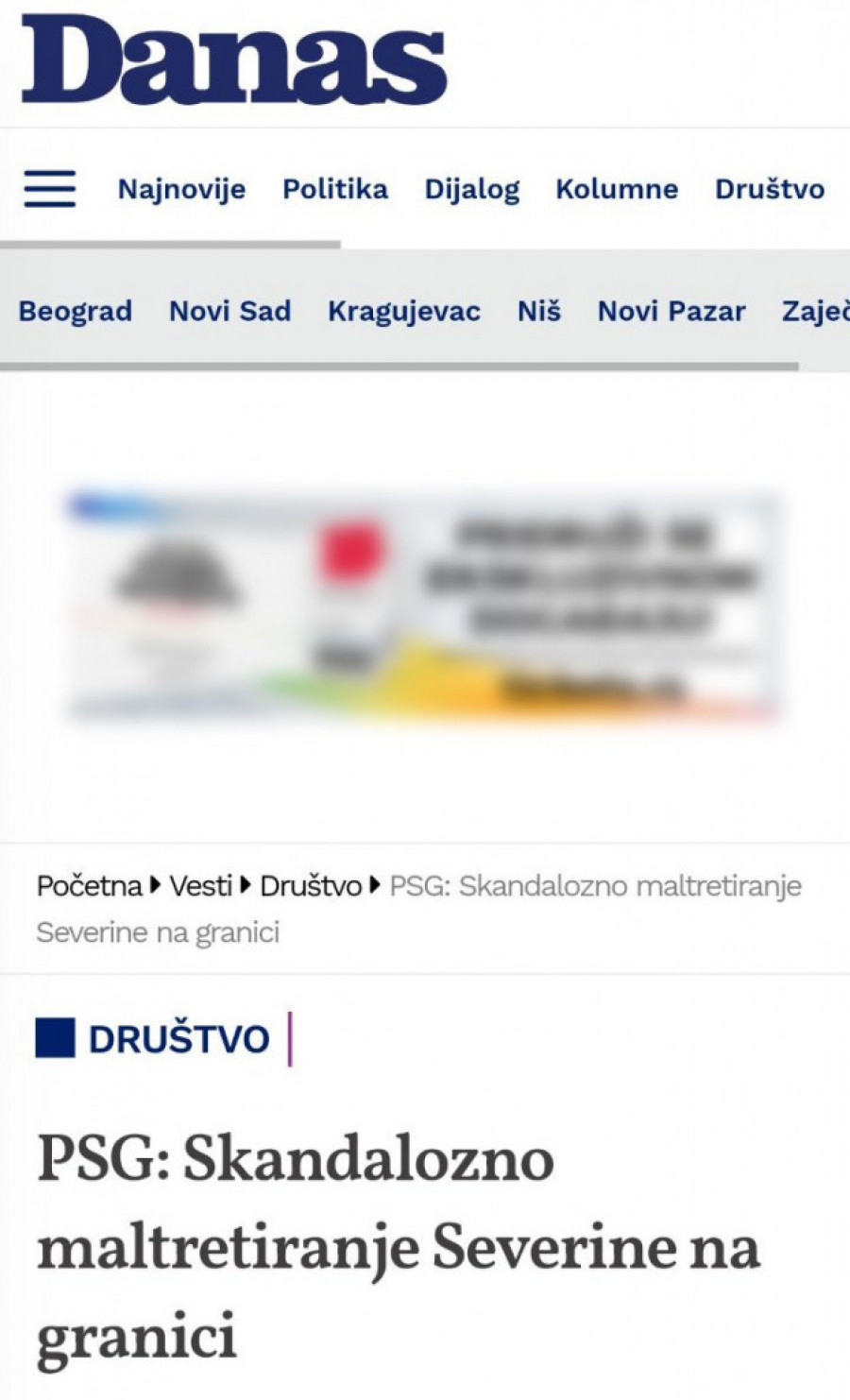 Severina privedena na srpskoj granici. Srbijanska NVO javnost: Strašno! Srbija je fašistička diktatura!