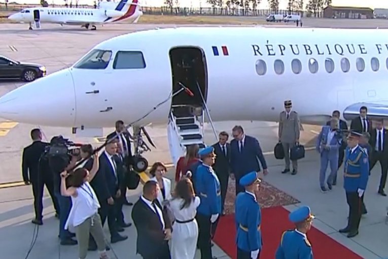 Francuski predsednik sleteo je u pratnji "lovaca", a nakon srdačnog susreta sa predsednikom Vučićem uputili su se ka Palati Srbija gde će razgovarati o brojnim važnim temama.