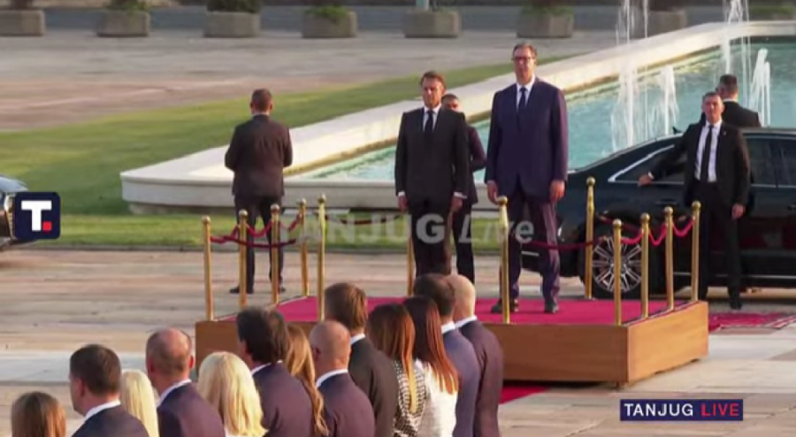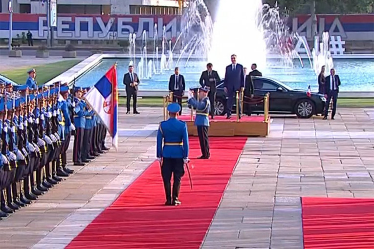 Predsednik Srbije i predsednik Francuske dočekani su uz stroj počasnog bataljona garde i crveni tepih.