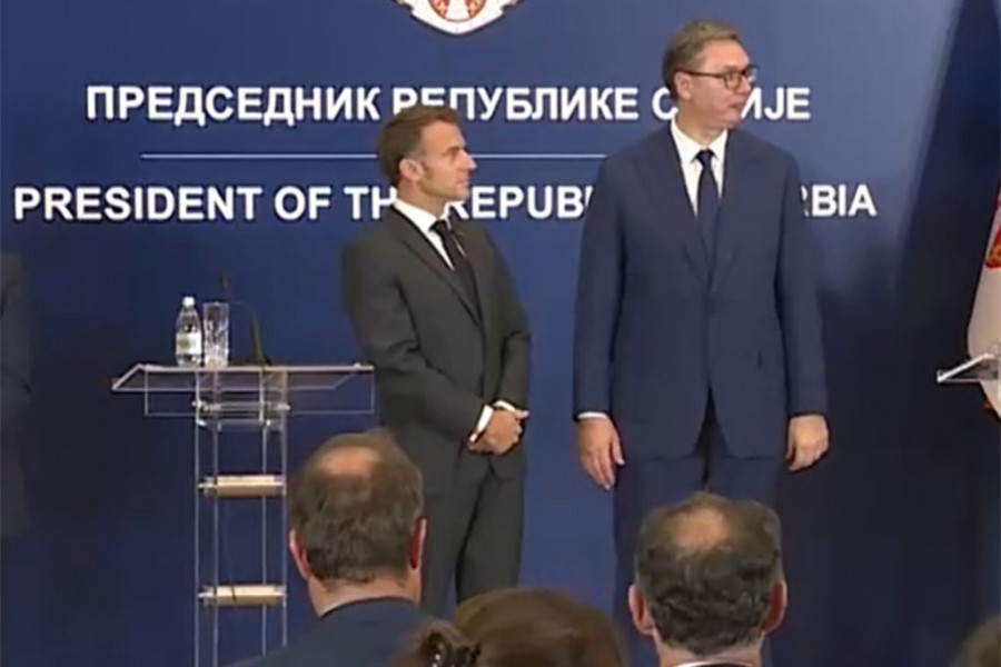 Francuski predsednik Emanuel Maron sleteo je u Beograd u dvodnevnu posetu Srbiji. Posle sastanka sa predsednikom Srbije Aleksandrom Vučićem obratili su se medijima.