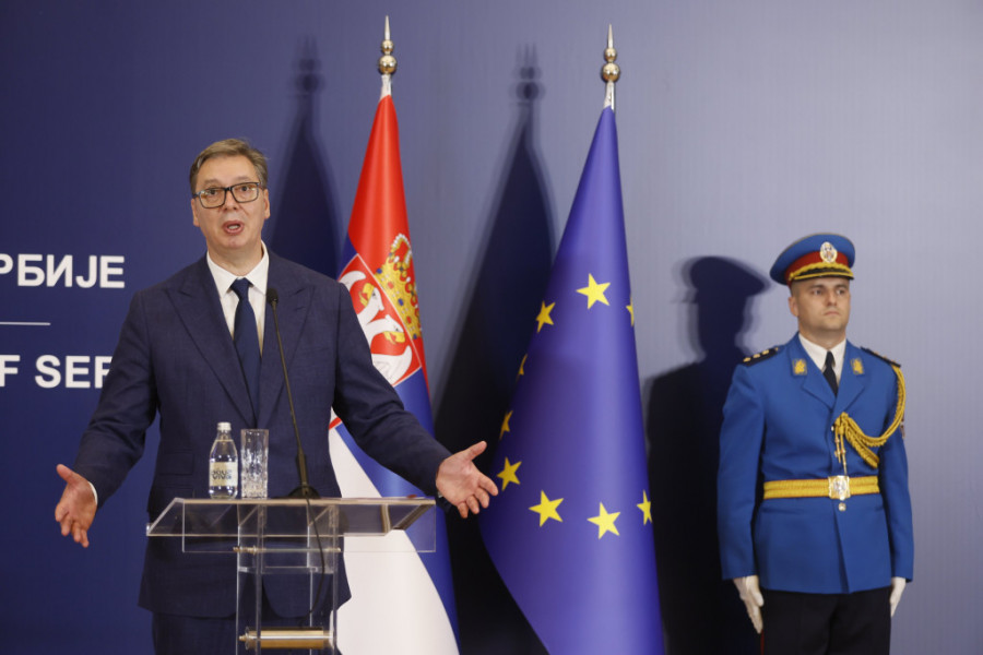 Predsednik Vučić je, odgovarajući na pitanje novinara da li se Srbija kupovinom "rafala" udaljava od Moskve i približava EU, istakao da je ponosan na politiku Srbije, što uvek poštuje Povelju UN, što se ne bi moglo reći za mnoge zemlje na Zapadu.